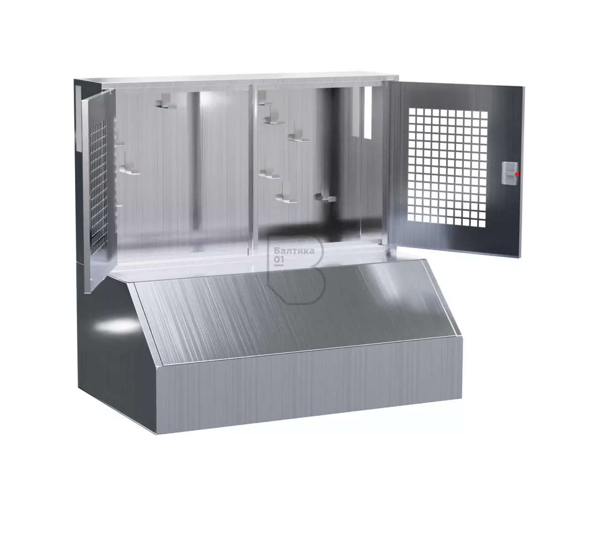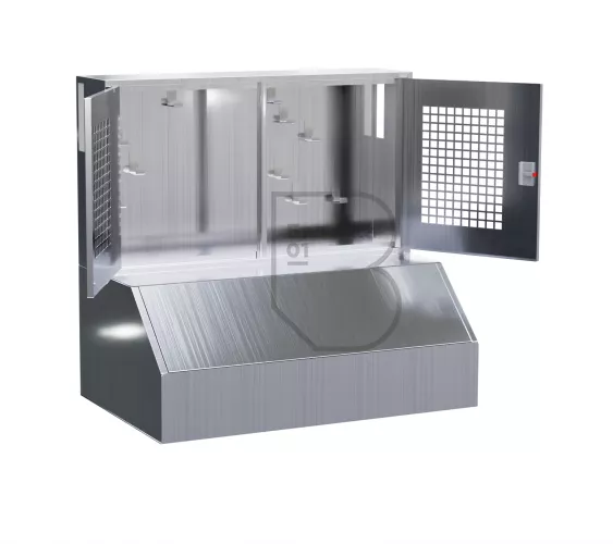 Щит пожарный комбинированный "Модуль" из нержавеющей стали (2 двери сетка)
