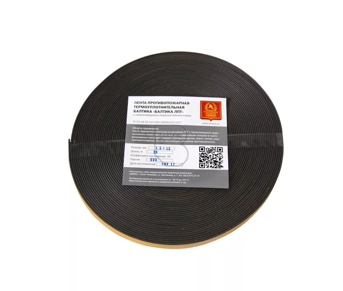 Лента противопожарная термоуплотнительная «БАЛТИКА ЛПТ» с самоклеящимся морозостойким слоем предназначена для герметизации зазоров в противопожарных преградах (дверей противопожарных, ворот, люков, окон противопожарных, систем вентиляции, клапанов противодымных).