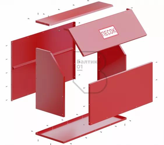 Ящик для песка 0,5 м3 сборно-разборный - предназначен для хранения пожарного песка, используемого для ликвидации возгораний и в тех местах, где существует угроза разлива легковоспламеняющихся и горючих жидкостей. Ящики применяются на автозаправочных станциях, различных предприятиях и складах.