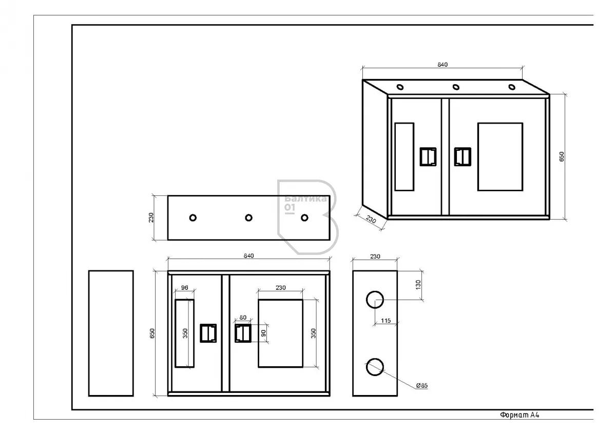 - Габаритные размеры, мм650х840х230